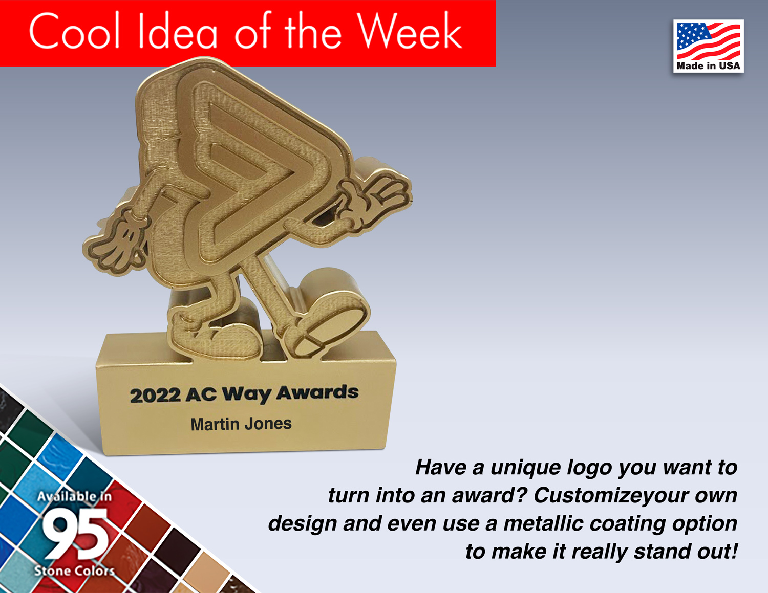 Have a unique logo you want to turn into an award? Customize your own design and even use a metallic coating option to make it really stand out!