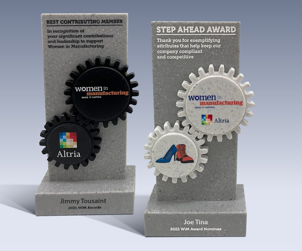 Utilizing different stone colors on the same size awards can help make the different award categories stand out on their own.