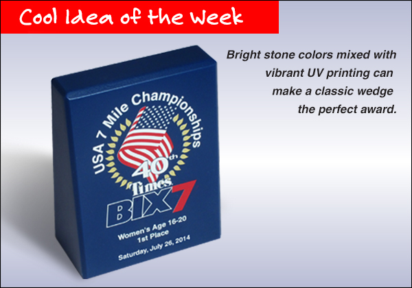 Bright stone colors mixed with vibrant UV printing can make a classic wedge the perfect award.
