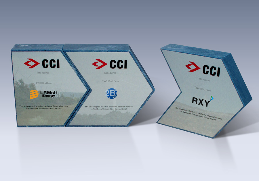 This custom award was designed to play on the arrow in the logo and allowed for pieces to be added as deals were completed throughout.
