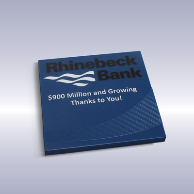 Celebrating a milestone in banking, the customer chose a coaster cast in their corporate blue color with a carbon fiber textured accent. The accent complimented their logo which has similar flowing lines.