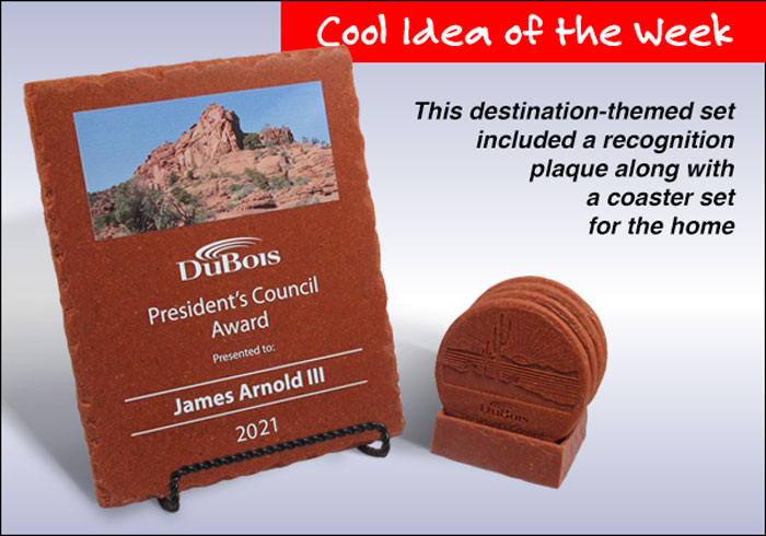 This destination-themed set included a recognition plaque along with a coaster set for the home.