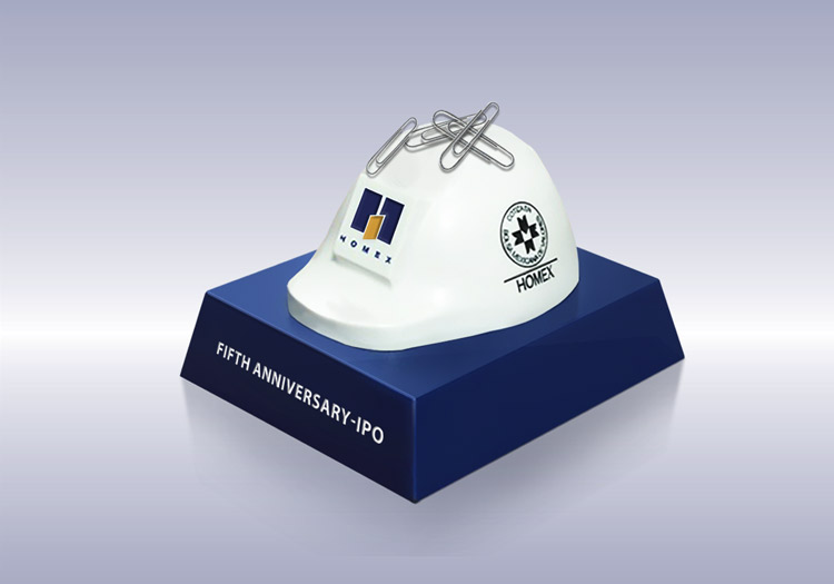 A client wanted a construction-related gift to celebrate a company's fifth anniversary of their initial public offering.