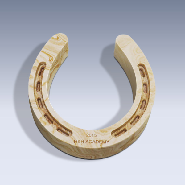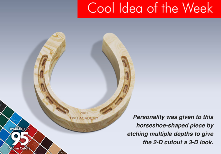 Personality was given to this horseshoe-shaped piece by etching multiple depths to give the 2-D cutout a 3-D look.
