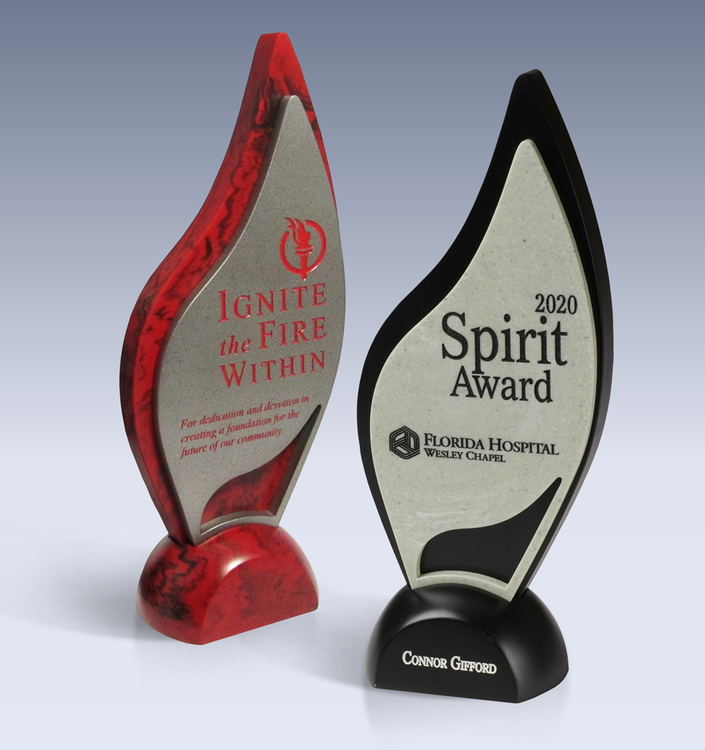 The layered flame-shaped Ignite award is perfect for identifying dedicated employees or recognizing years of service.