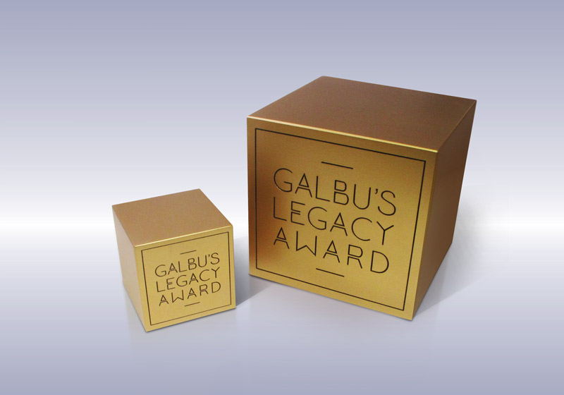 With a low-quantity request the customer could not afford gold-plated metal cubes. The solution was cube made in a cut stone material with a metallic gold coating. The weight of the stone contributed to the perceived value of the awards with the 6 inch cube weighing over 15 pounds!