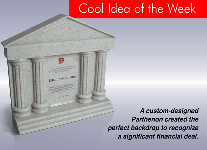 A custom designed Parthenon created the perfect backdrop to recognize a significant financial deal.