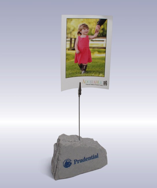 Utilizing a rock shape that matched their logo this unique desk-sized picture holder was created as a gift to hand out to employee.