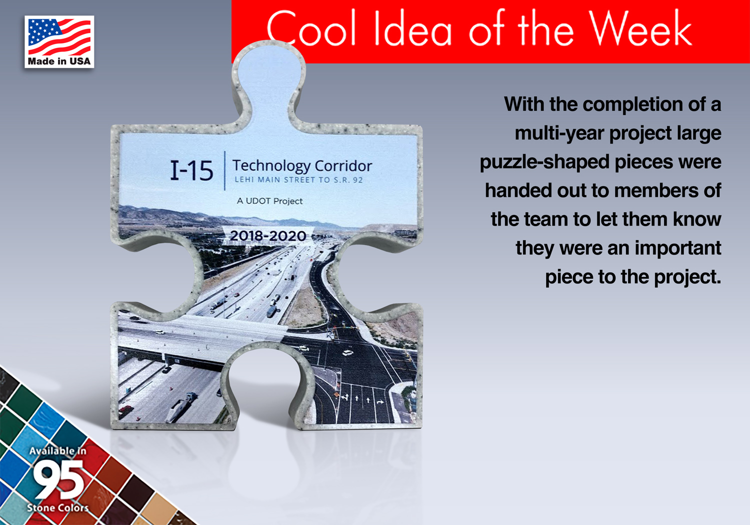 With the completion of a multi-year project, large puzzle-shaped pieces were handed out to members of the team to let them know they were an important piece of the project.
