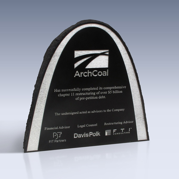 A custom rock was created to play on the name of the company with an arched shape. The front was smooth so it could be decorated with a rock texture on the back.