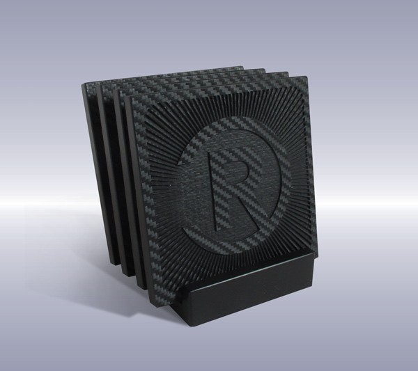 Utilizing a carbon fiber textured coaster the customer’s logo was etched over the top of the texture creating a very unique look to the coaster set!