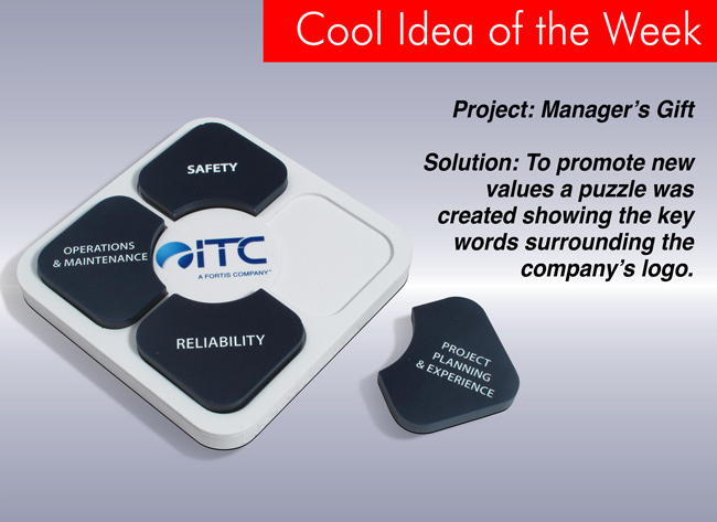 To promote new values a puzzle was created showing the key words surrounding the company logo.