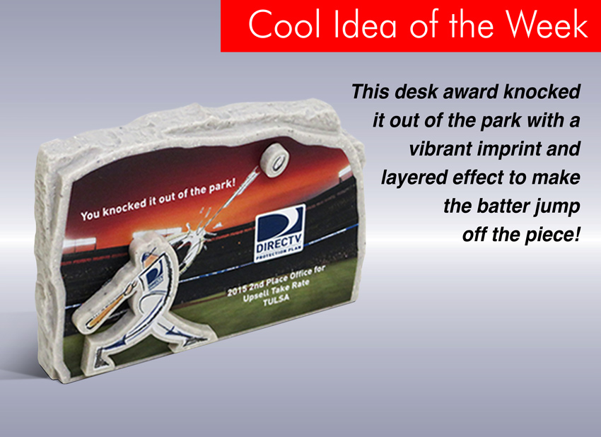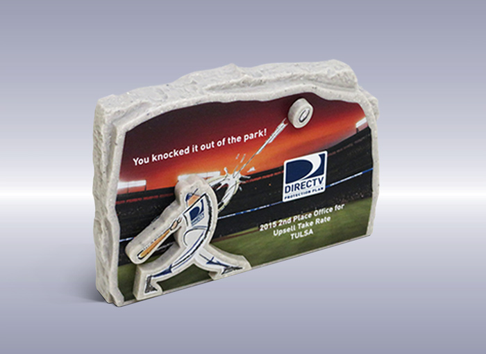 This desk award knocked it out of the park with a vibrant imprint and layered effect to make the batter jump off the piece!