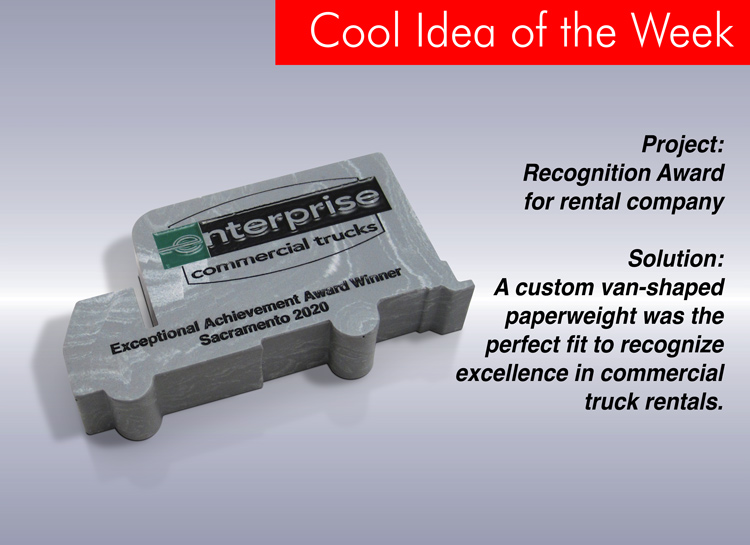 A custom van-shaped paperweight was the perfect fit to recognize excellence in commercial truck rentals.