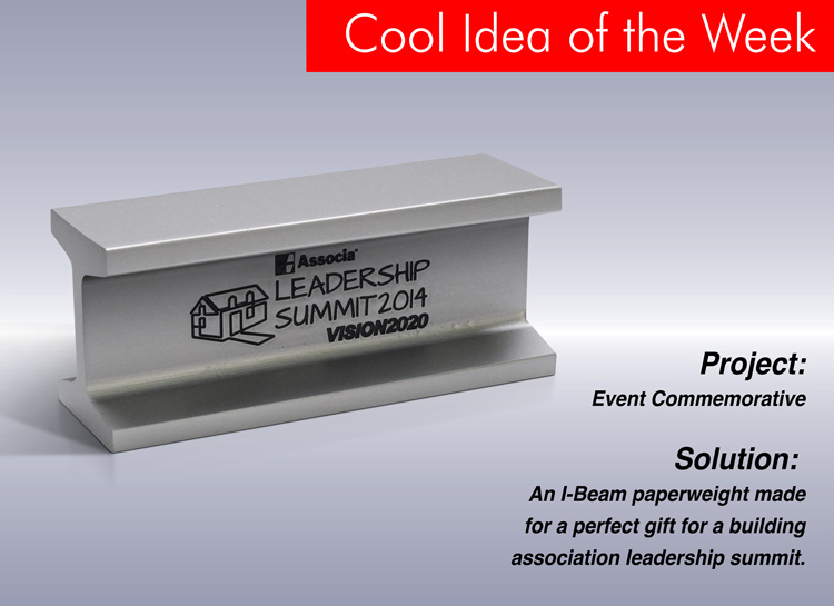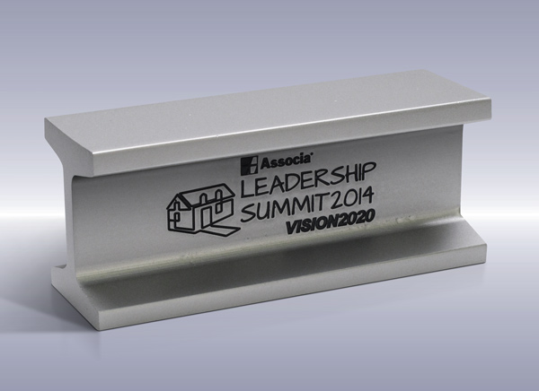 An I-Beam paperweight made for a perfect gift for a building association leadership summit.