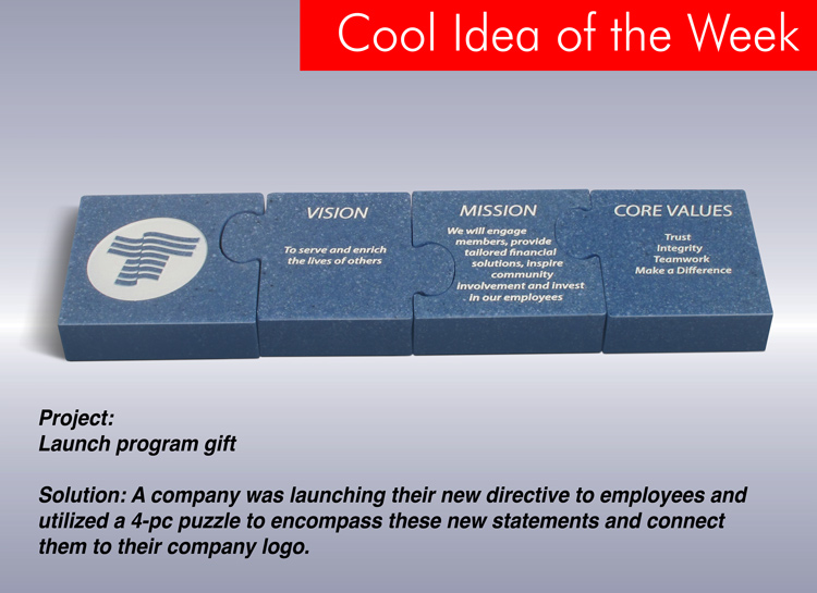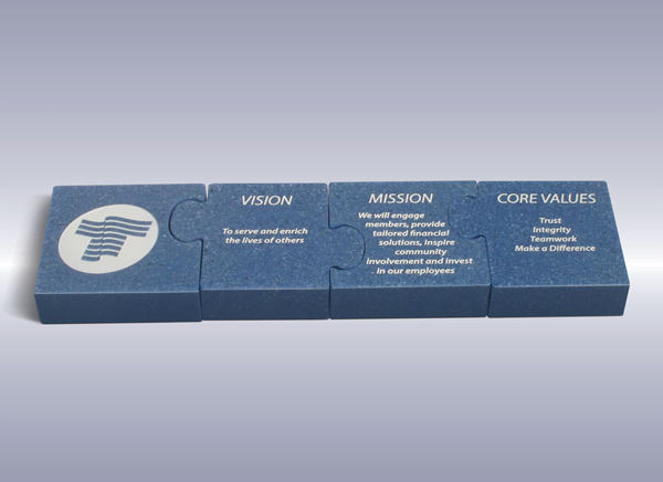 A company was launching their new directive to employees and utilized a 4 piece puzzle to encompass these new statements and connect them to their company logo.