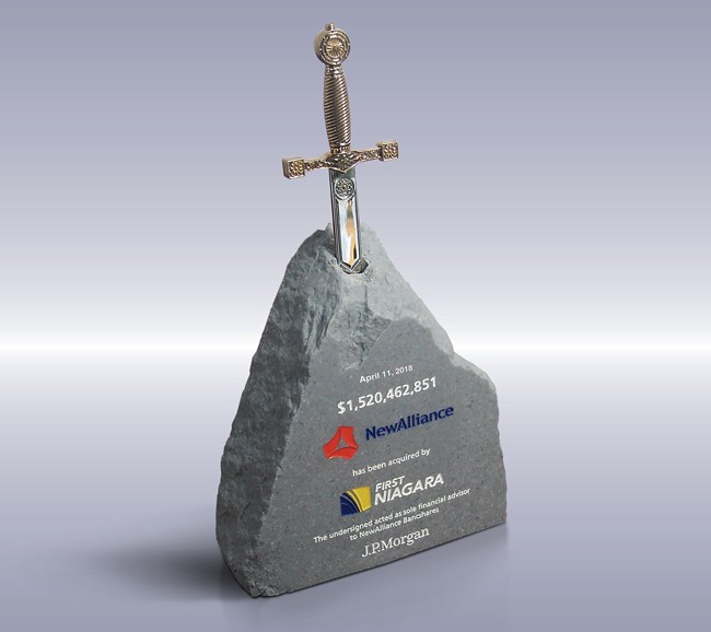 This rock was given an added touch by creating a long recess on top to hold a sword letter opener. King Arthur would have been proud to have this piece on his desk!